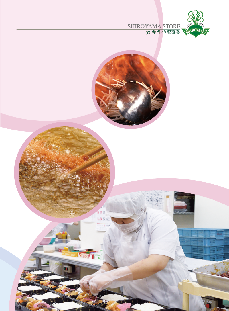 城山セントラルキッチンでは、鹿児島市内のお客様に 手作りできたての美味しさを、そのままお届けします。 会議・会合、ミニ集会・敬老会、あいご会や各種スポーツイベント、PTA・ ママ集会などのご注文をお受けしております。