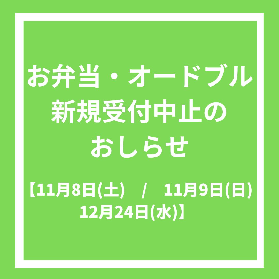 お弁当・オードブル新規受付中止のご案内【11月8日(土)・11月9日(日)・12月24日(水)】