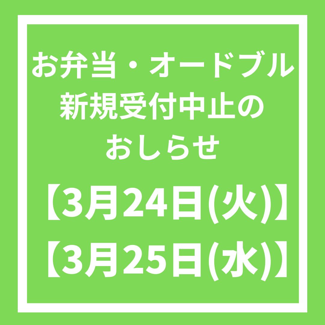 お弁当・オードブル新規受付中止のご案内【3月24日(火)、3月25日(水)】