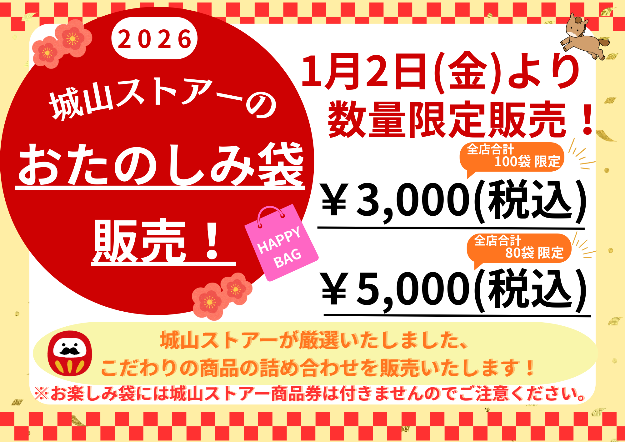 城山ストアーは本日、1月2日(金)全店初商い営業いたします♪