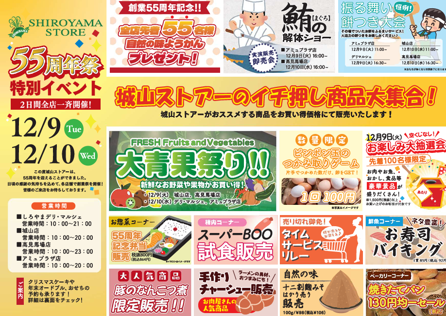 明日、明後日はいよいよ城山ストアー55周年大創業を、